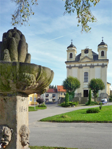 Farní kostel sv. apoštolů Petra a Pavla byl založen dle současných zpráv archivu farního na místě kostela starého se dřevěnou věží Krištofem Burkhardem baronem Kleem r. 1755, a stavba byla dokončena až jeho synem Františkem Ludvíkem roku 1760.